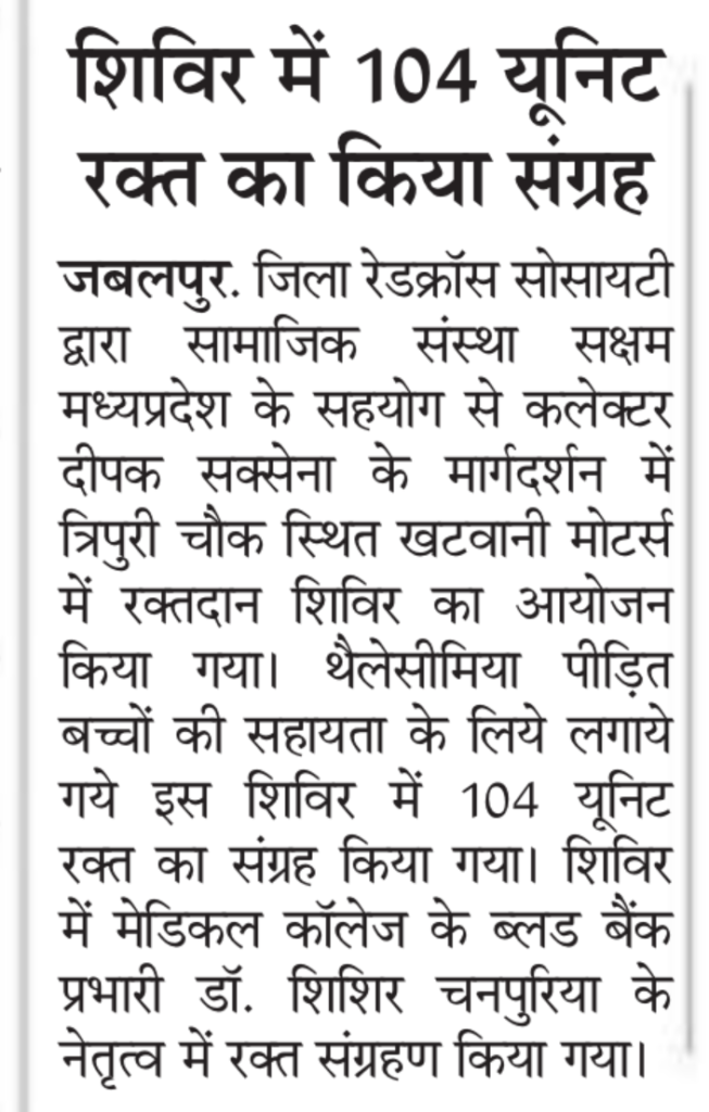 In collaboration with Red Cross society, Saksham Foundation and Khatwani Motors KIA total 104 units of blood collected. Mr. Rohit Khatwani director Khatwani Motors also participated in blood donation camp.